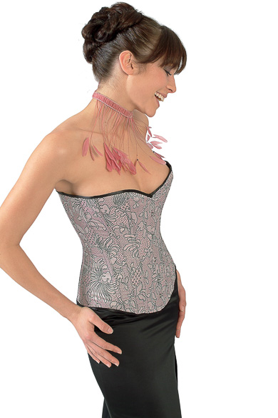 Auch dieses Korsett ist ein Klassiker. Der etwas erhöhte seitliche obere Abschluss erzeugt einen Push-up-Effekt, der ein schönes Dekolleté formt. Der untere Abschluss läuft gerundet aus und bewirkt einen flachen Bauch. Der gesamte Schnitt ist eine Hommage an den Empire-Stil. Für die etwas kleinere Dame ist dieses Modell auch sehr gut als Vollbrustkorsett geeignet und problemlos als Oberbekleidung tragbar.
