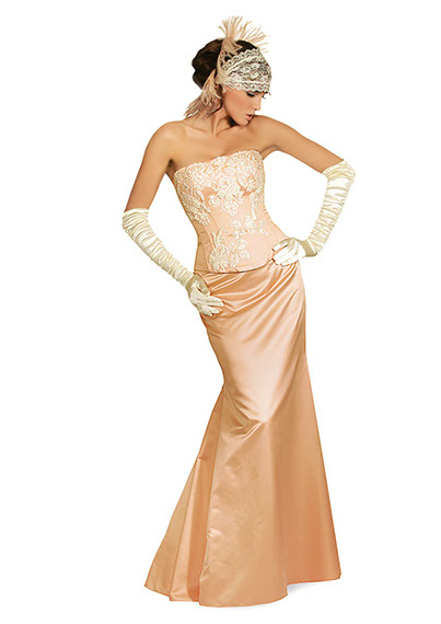 Korsett: M 24 App1 Satin apricot • Rock: R 21 Satin apricot
