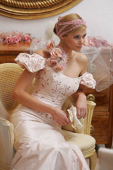 Korsett: M 32 Lurex Zeremonie rosé • Rock: R 20 Dupionseide uni tropical creme