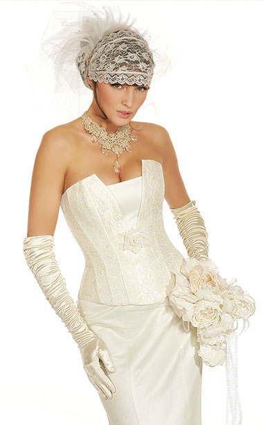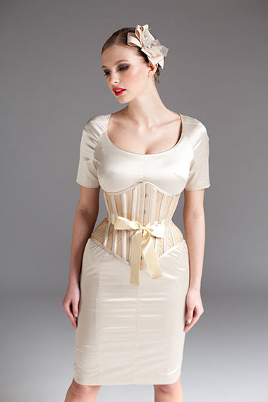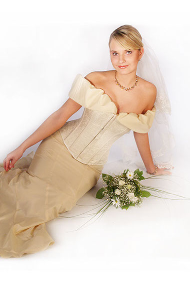 Korsett: M 50 Lurex Romantic weiß/gold • Rock: R 50 Dupionseide Tropical creme