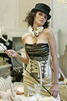 Satin champagner, Vorderteil mit schwarzer Spitze (01) drapiert