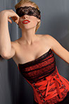 Satin rot, Vorderteil mit schwarzer Spitze (01) drapiert