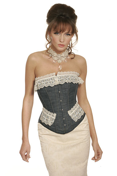 Korsett: M 2520 Sp/5 Jeans gerippt • Rock: R 17 Gobelin natur
