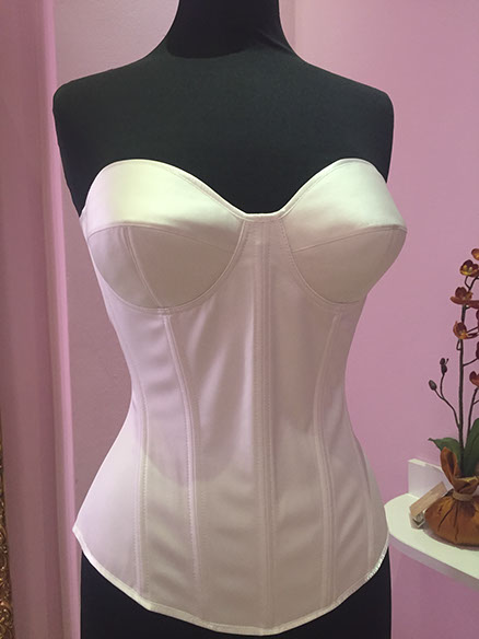 Durch die Kombination unserer Fashion-Linie mit feinsten Stoffen wie Brokat, Seide, Lurex und anderen hochwertigen Stoffen entsteht unverwechselbare, sehr weibliche Hochzeitsmode. Ob adrett-elegant oder sinnlich-luxuriös, wir beraten Sie gerne und stellen jede Anfertigung nach Ihren Wünschen in unserer eigenen Schneiderei her. Vom Entwurf über die Schnittentwicklung und Entstehung Ihres individuellen Kleidungsstückes bleibt alles in einer Hand. Unsere Korsetts zeichnen sich nicht nur durch originelles Design, sondern auch durch kostbare Materialien, optimale Passform und perfekte Verarbeitung aus.
