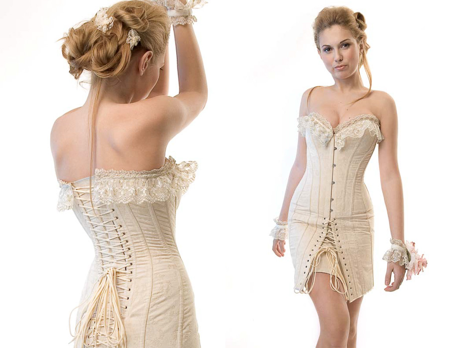 Korsettkleid: KL 1 Sp Gobelin natur mit Spitze