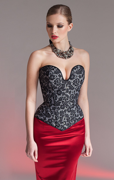 Satin schwarz / Satin caramel mit Spitze (05) überzogen